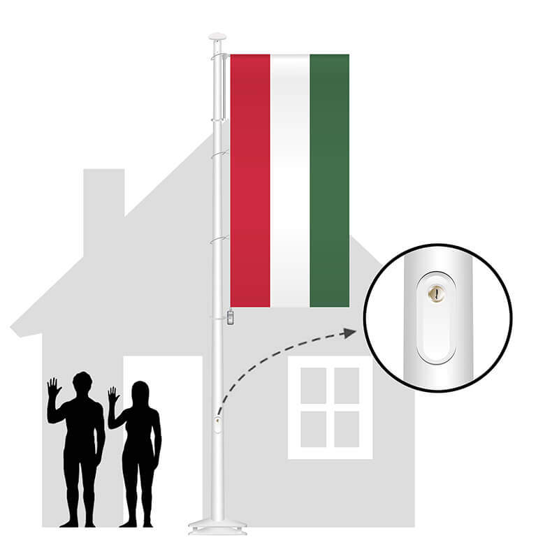 Magasságától függően az alumínium zászlórudak két, három vagy négy alumínium csőből állnak, amelyeket hüvelyek és alumínium gyűrűk segítségével összeszerelnek. A zászlórudak talpszerkezetét betonba építik be. A zsanéros alaplap megkönnyíti a zászlórúd ledöntését például karbantartás alatt. A csavarrendszer lehetővé teszi a zászlórúd függőleges helyzetének pontos beállítását.
